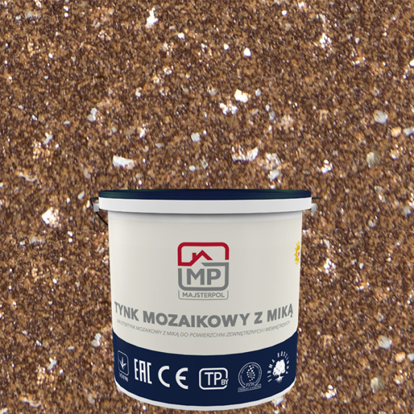 Декоративна мозаїчна штукатурка z Mika зі слюдою від польського виробника MajsterPol — це високоякісна маса на основі акрилової дисперсії, збагачена добірною кольоровою кварцовою крихтою та слюдою. Такий склад створює виразну фактуру і дарує поверхні глибину та яскравість. У цій позиції представлено відтінок KALISTO — теплий, збалансований колір із м’яким золотистим переливом, що створює відчуття затишку, стриманої розкоші та вишуканої естетики.