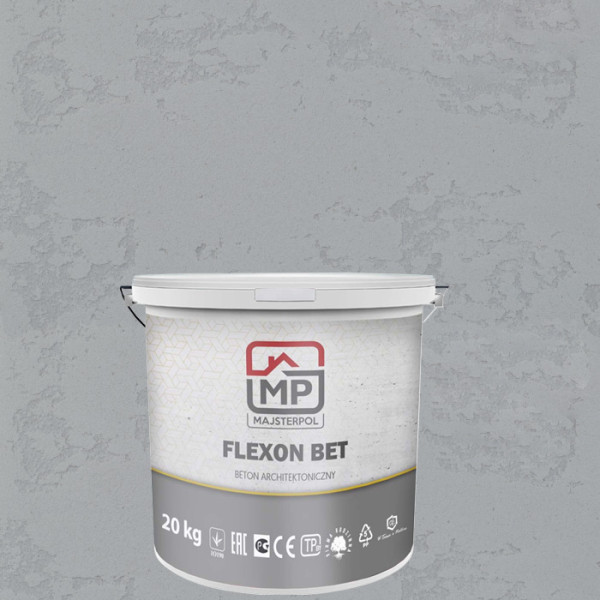 Декоративна штукатурка FLEXON BET NEVADO від відомого польського бренду MajsterPol — це полімерне структурне покриття з характерною фактурою архітектурного бетону. Матеріал призначений для декоративного оздоблення стін як у приміщеннях, так і зовні будівель. Завдяки особливим технікам нанесення можна отримати ефект дощатого опалубного бетону, поверхню з характерними вкрапленнями, раковинами, вм’ятинами — усе для створення реалістичного «бетонного» ландшафту.
